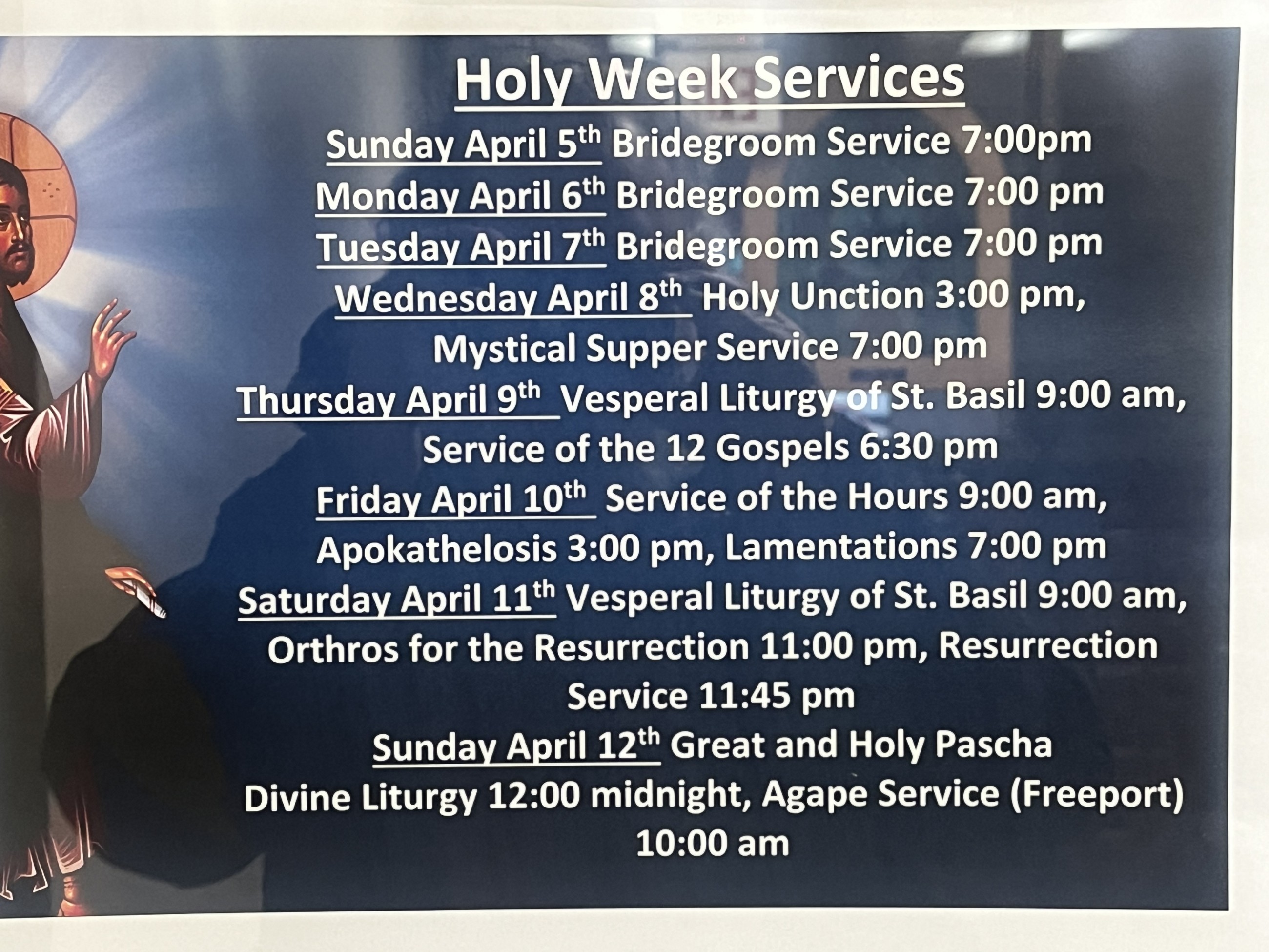 PASCHA Sunday April 12: 12 midnight Divine Liturgy, 10 am Agape Service in Freeport